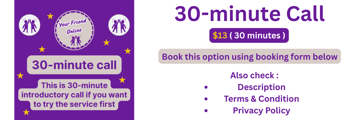 If you just want to book 30 minutes short call. Or if it’s your first time and just want try the service in small budget, you can book this introductory type short call option.